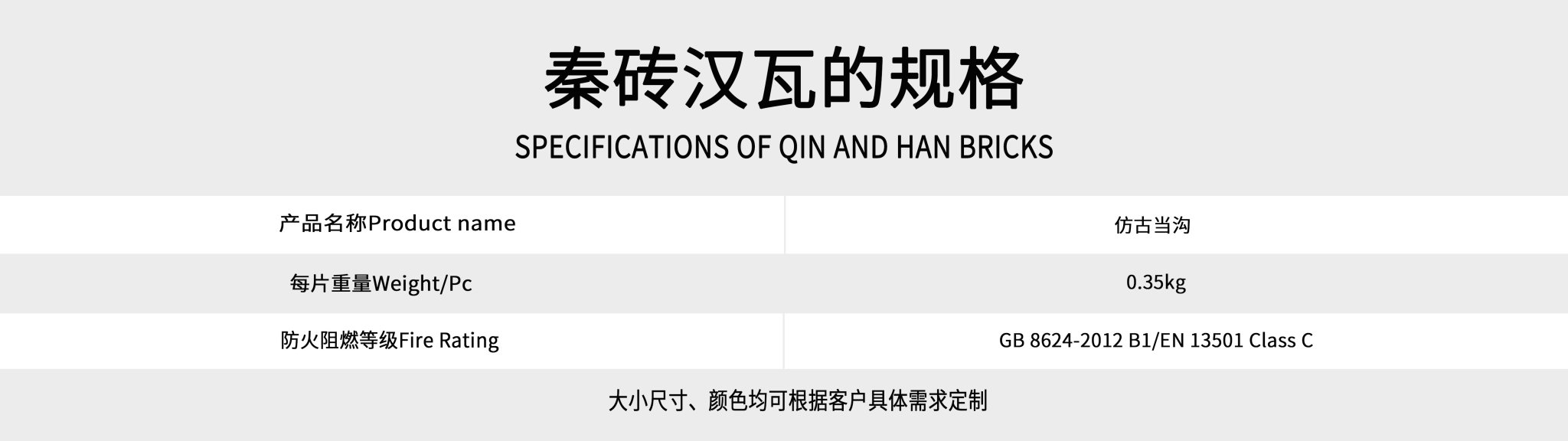 仿古瓦當溝在自然環(huán)境中具有更佳尋常的耐久性,它即使長期暴露于紫外線、強光、潮濕、寒熱等惡劣環(huán)境下,仍能保持其顏色和物理性能的穩(wěn)定性。經(jīng)試驗檢測證明,可以確保15年△E值小于5。仿古秦磚漢瓦通過了12000小時的人工老化測試,檢測結果△E=3.86。(根據(jù)太陽照射量和年日照時間,12000小時檢測試驗相當于自然使用45年,遇冷不脆、遇熱不軟,長期使用環(huán)境溫度-40℃至200℃,與鋼鐵熱膨脹系數(shù)基本一致,使因溫差產(chǎn)生的位移基本相等。