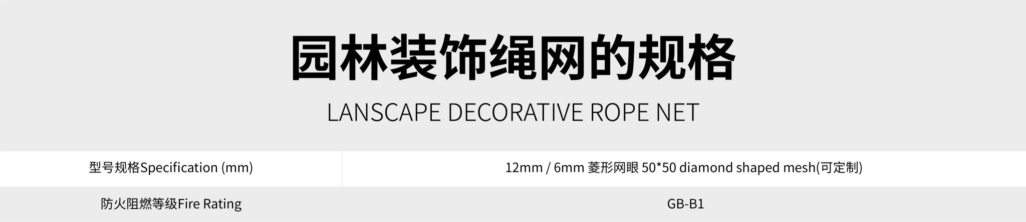 ? ? ? ? 園林裝飾繩網(wǎng)是深圳市科佰工貿(mào)有限公司采用目前國際上先進(jìn)的納米合成高分子材料技術(shù)和工藝生產(chǎn)。利用納米粒子的特有的物理化學(xué)性質(zhì),使得其具有更加優(yōu)異的耐候性及阻燃性,能滿足美國ASTM-G154-06 抗UV老化測試標(biāo)準(zhǔn),并能通過美標(biāo)UL94-V0級(jí)阻燃,在國內(nèi)園林裝飾繩網(wǎng)也通過了國家防火建材阻燃測試B1級(jí)。?